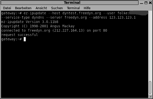 Als Alternative unter Linux bietet sich 'ez-ipupdate' an. Unter Debian oder Ubuntu 'sudo apt-get install ez-ipupdate'. Auch hier als Protokoll 'dyndns' einstellen.