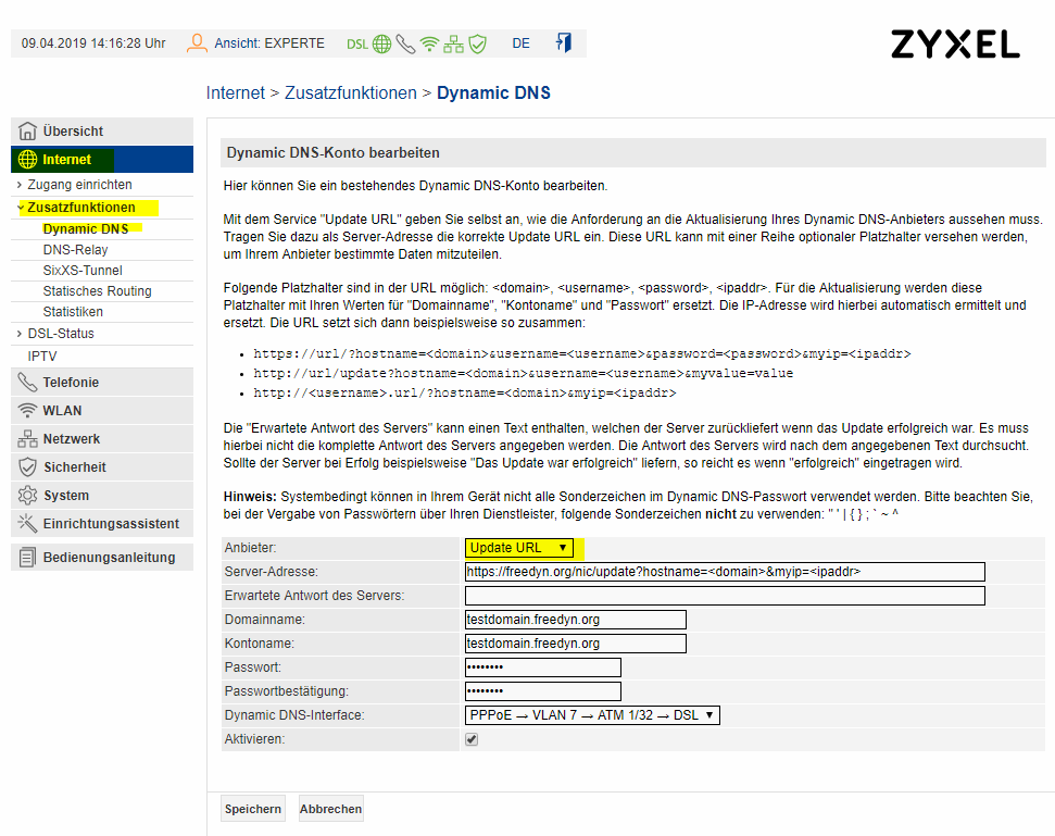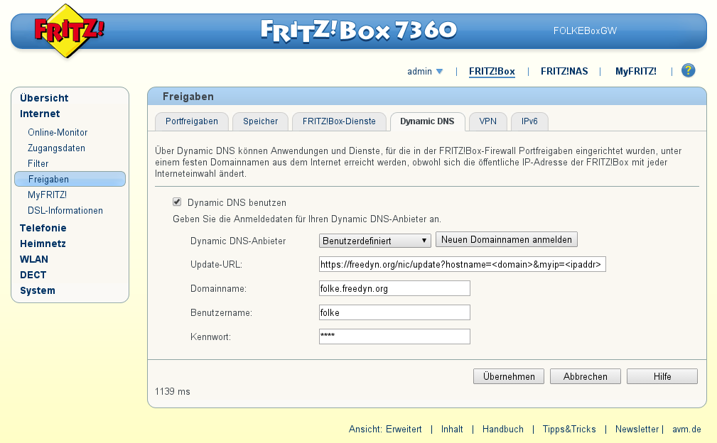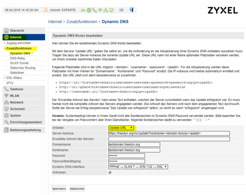 Die Update-URL-Adressen von FreeDyn.org lauten: