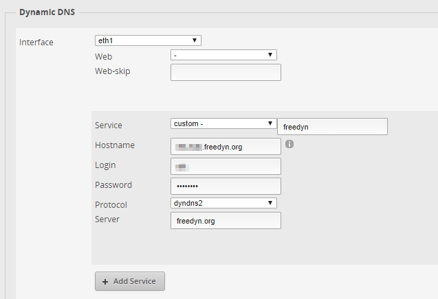 In der Oberfläche bei Dynamic DNS einen Service vom Typ 'custom' definieren und z.B. 'freedyn' nennen.